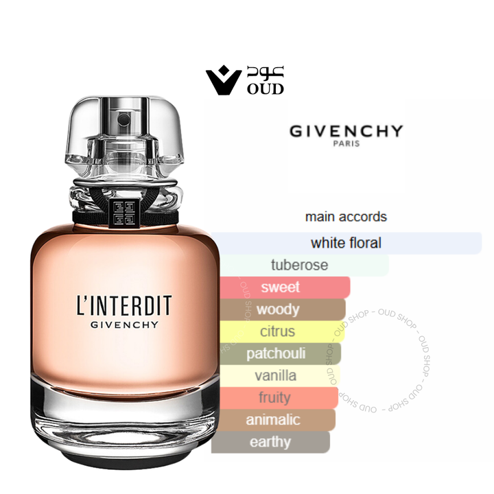 L'Interdit Eau de Parfum by Givenchy is a captivating Oriental Floral fragrance for women, launched in 2018. A modern twist on the iconic 1957 scent, it combines the allure of white flowers with the depth of woody and earthy notes.
